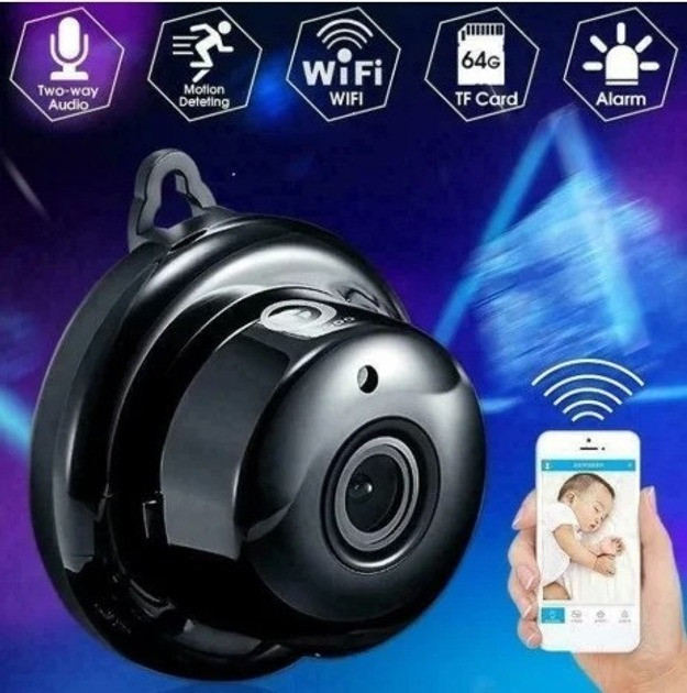 Мини Wi-Fi камера V380 OMG Eye — компактний і багатофункційний пристрій для відеоспостереження всередині приміщень. Камера забезпечує високу роздільну здатність 720p, двосторонній аудіозв'язок і зручний віддалений доступ через застосунок на смартфоні або планшеті. Ідеальна для дому, офісу або використання як радіоняні для контролю дитини.