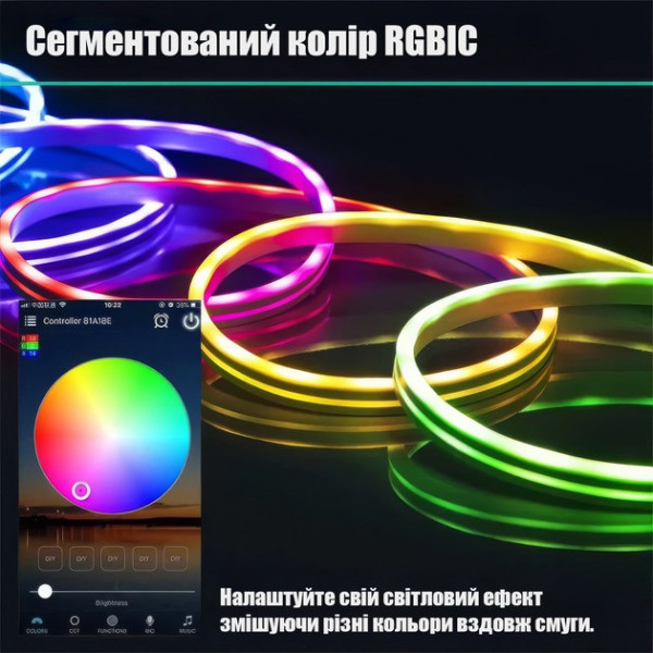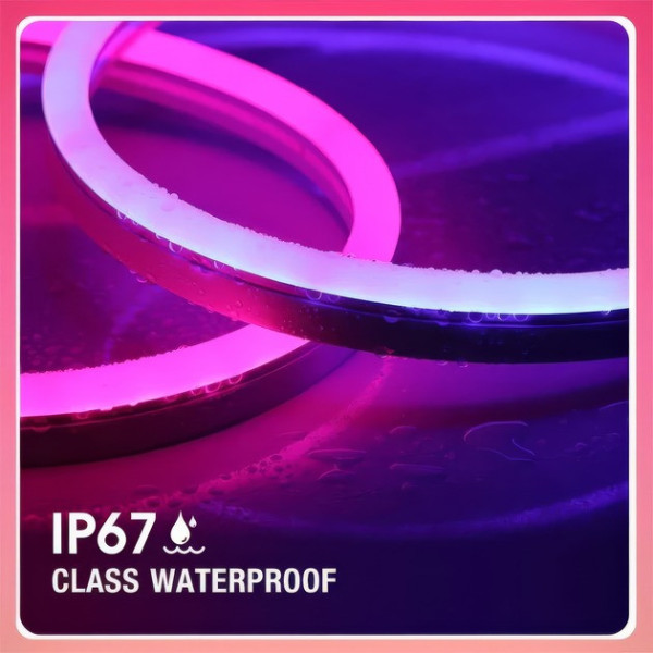 Розумна гнучка LED RGB завдовжки 10 метрів — універсальне рішення для стильного декоративного підсвічування будинку, офісу, вітрин і святкових інтер'єрів. Стрічка зроблена у формі неонового шланга, який легко вигинається й повторює будь-які форми, даючи змогу створювати унікальні світлові контури та написи.