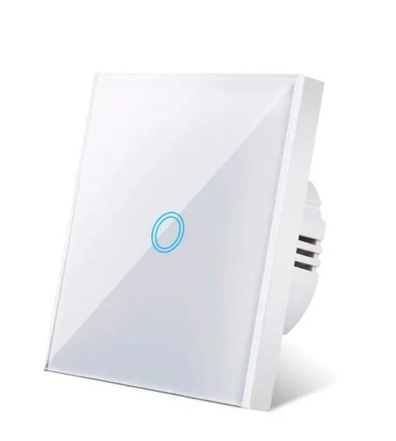 Розумний сенсорний вимикач світла 1 канал, без нейтралі, скло з LED-індикацією білий