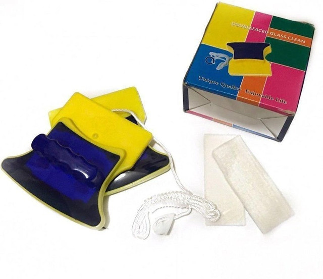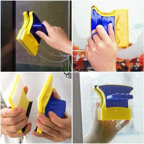 Магнітні щітки для миття вікон Double Side Glass Cleaner — є двома накладками з магнітами та очисну поверхню, які мають зручну ручку та мотузку на них для можливості одночасного двобічного миття вікон. Ці магнітні щітки для миття вікон прилипають з обох боків вікна, і тоді коли Ви протирете вікно з одного боку, другий магніт здійснює аналогічні рухи, але з іншого боку вікна. Правда, миття вікон таким способом може проводитися тільки на одношарових вікнах.