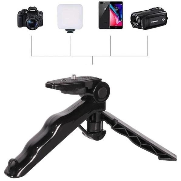 Багатофункціональний трипод — може виконувати функцію як звичайної настільної триноги, так і ручного мінітримача. Прилад зручно складається й змінює свою форму. Для закріплення на ньому ґаджетів використовується універсальний отвір для шурупа 1⁄4 дюйма. Такий тип кріплення дає змогу з легкістю встановити на ньому камеру, фотоапарат, телефон, світлодіодну панель та інші аксесуари.