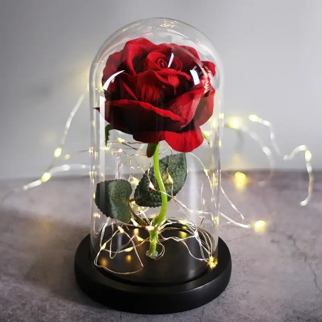 Троянда в колбі з LED-підсвіткою велика червона Троянда стане не тільки приємним сюрпризом, але й вишуканим доповненням до будь-якого стилю інтер'єру — від класики до мінімалізму. Лаконічне виготовлення та квітка під прозорим куполом ідеально впишуться в будь-які умови, ставши його контрастною прикрасою. Не вимагають особливого догляду: Видавайте пил із поверхні. Уникайте впливу прямих сонячних променів. Не ставте біля джерел тепла. Вимкніть намокання та механічне пошкодження Зберігайте тільки в приміщенні. Оптимальна вологість 60-80%, температура від +10 до +30 °C.