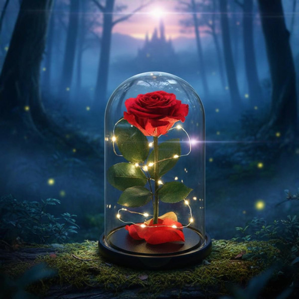 Штучна троянда в колбі з LED-підсвіткою, нічник LED діодний світильник вічна троянда