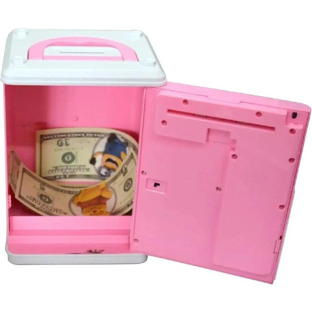 І не забудьте задати код доступу. За замовчуванням це 0000. Щоб гра вийшла максимально реалістичною, варто під час запуску придумати власну комбінацію. Досить утримувати * 10 секунд і почути звуковий сигнал. Далі набираєте чотири будь-які цифри і підтверджуєте їх #. Сейф оснащений справжнісінькою системою безпеки: незакриті дверцята пищить, нагадуючи про себе. Якщо ви або дитина забули код, а купюри дістати необхідно, можете скористатися простим прийомом злому. Для цього достатньо вийняти батарейки - це відновить заводський код "0000". Тому сміливо даруйте скарбничку-сейф і дорослим, і дітям, яких хочете привчити до ощадливості.