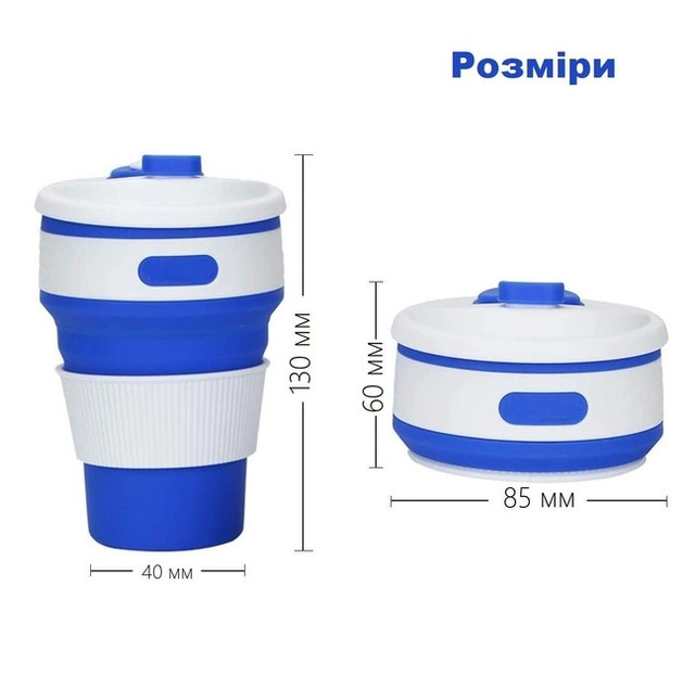 Складаний силіконовий стакан із кришкою для напоїв (кава, чаю) багаторазовий універсальний