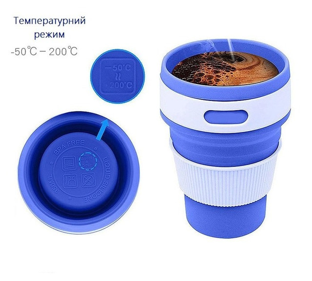 Силіконова чашка зручно складається, водночас висота в складеному вигляді становить усього 6 см, її можна навіть покласти в кишеню!