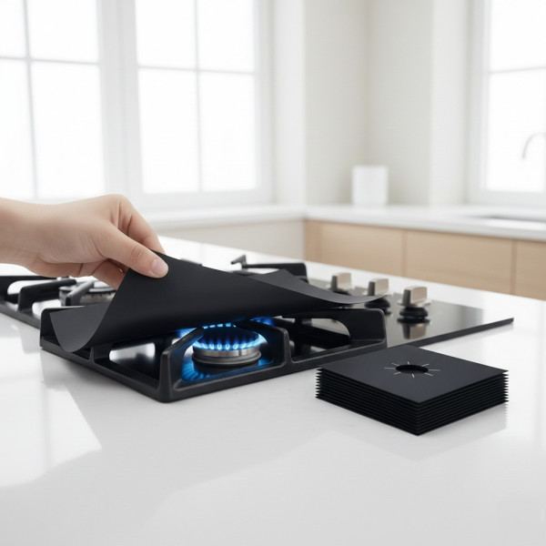 Пропонуємо до вашої уваги якісне та сучасне рішення, що увійшло на заміну одноразовим алюмінієвим накладкам. У кожній накладці в центрі вирізаний отвір із розширювальними радіальними просічками для зручного встановлення на плиті та адаптації під різні діаметри газових конфорок. Поверхня тефлонових накладок гладка з можливим плавним проходженням фактури основної тканини, стійка до високих температур і хімічного впливу. Тефлонові накладки для газових плит, мабуть, найраціональніше рішення для захисту газової плити або вбудованої варильної поверхні.