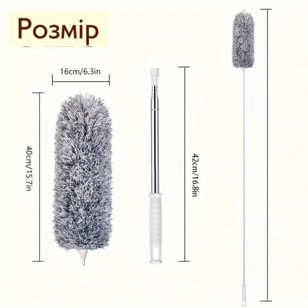 Багатофункціональність: підходить для прибирання люстр, шаф, батарей, жалюзі, стін, меблів та автомобіля.
