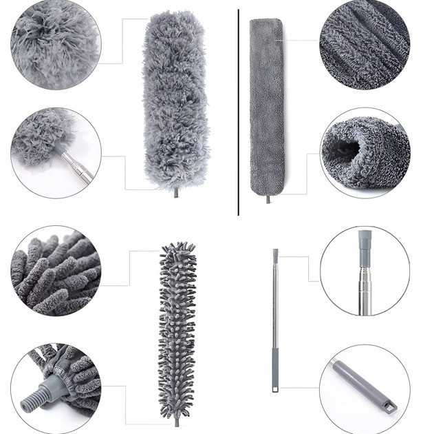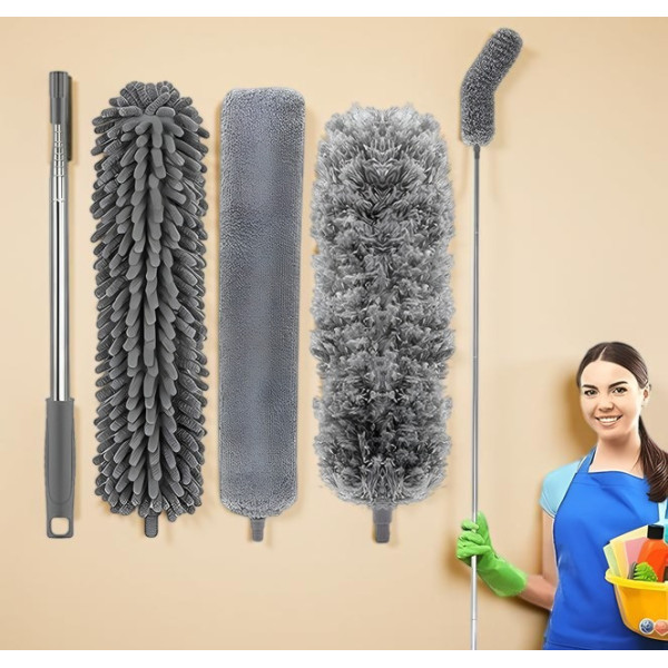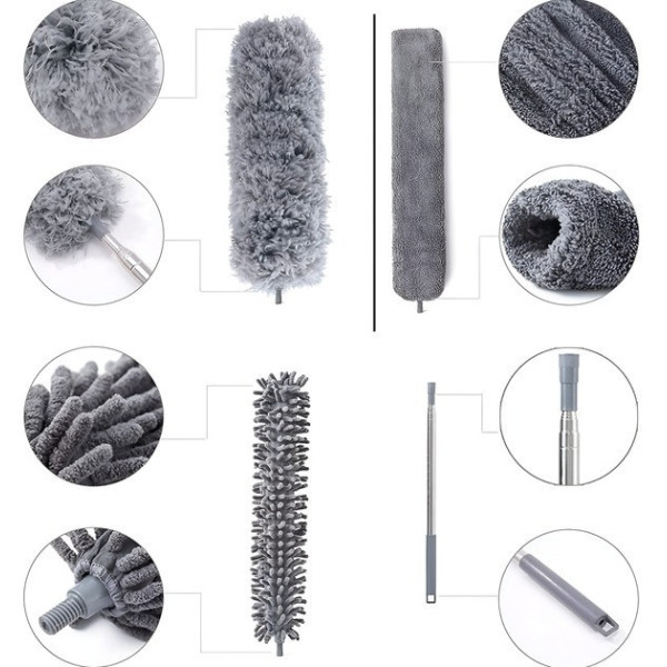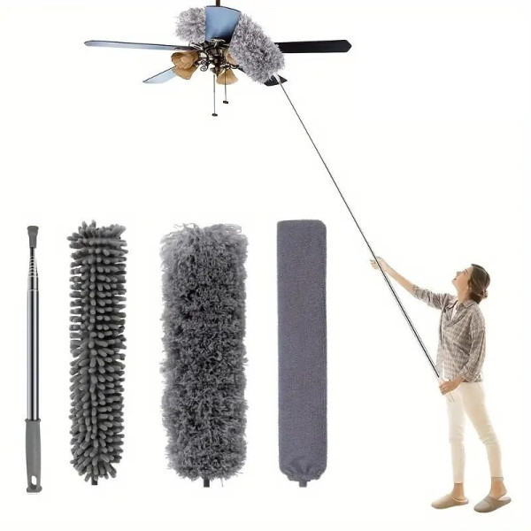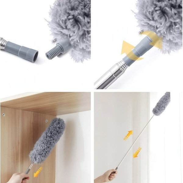 Телескопічна щітка з 3 насадками та висувною штангою до 2.8 метра для прибирання пилу