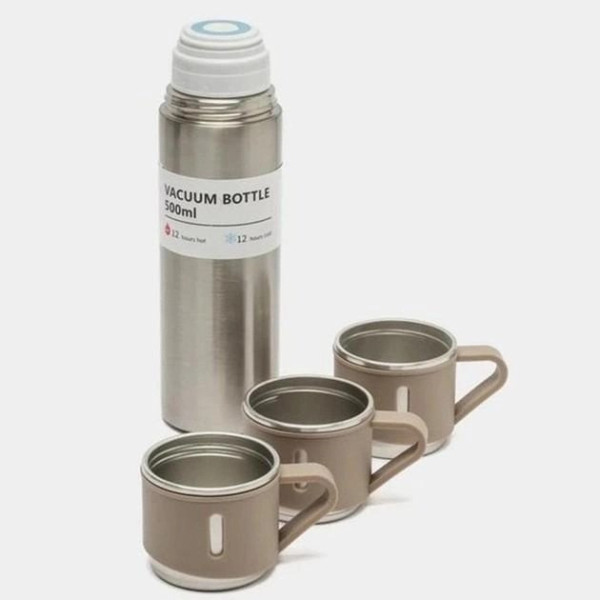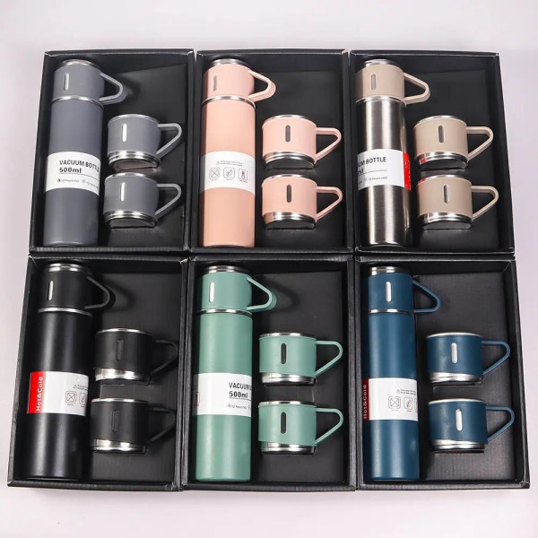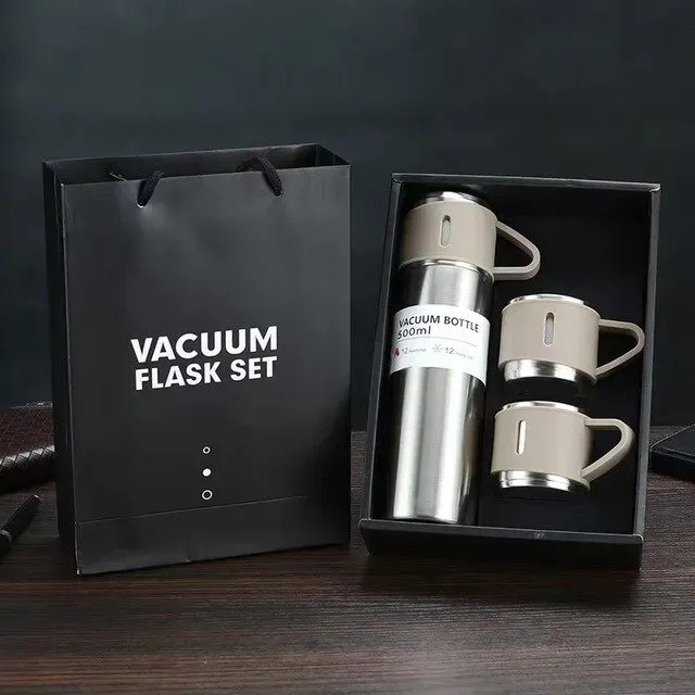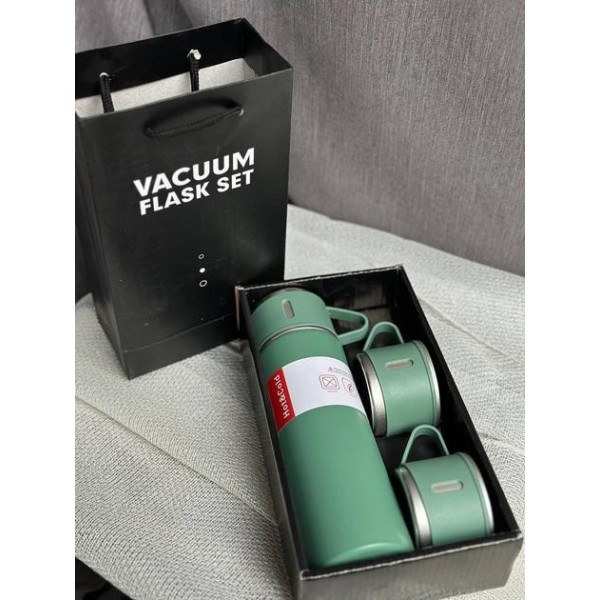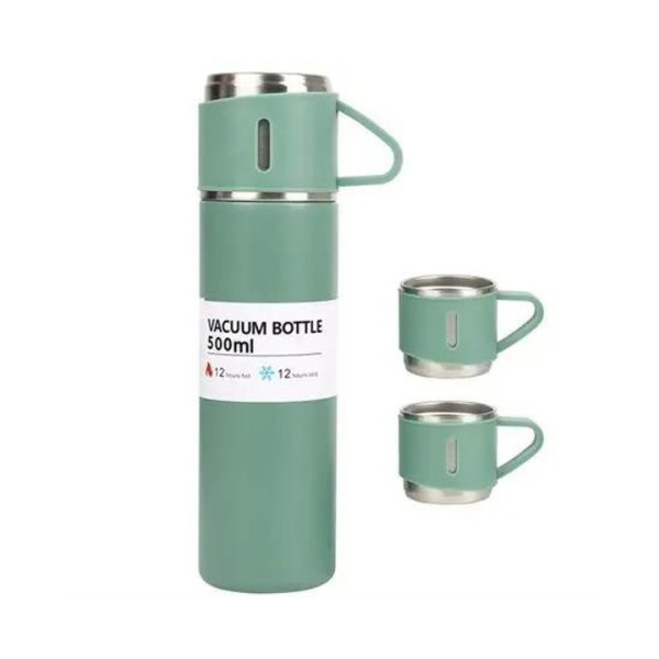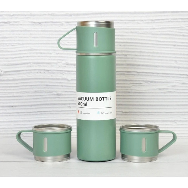 Термос Vacuum Bottle 500 мл із 3 чашками, вакуумна ізоляція, неіржавка сталь, у подарунковій упаковці