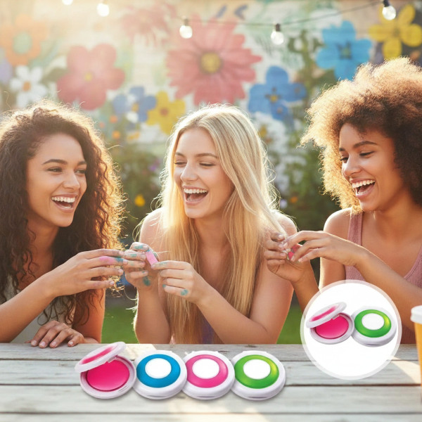 - Чотири кольори: фіолетовий, рожевий, зелений і синій