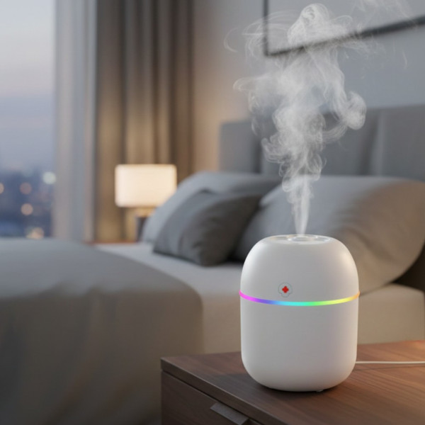 - Ефективне зволоження: Місткість 220 мл, з виходом туману 30-50ml/h цей зволожувач може ефективно підтримувати ідеальний рівень вологості в будь-якому приміщенні, забезпечуючи полегшення від сухого повітря та пов'язаного з ним дискомфорту.