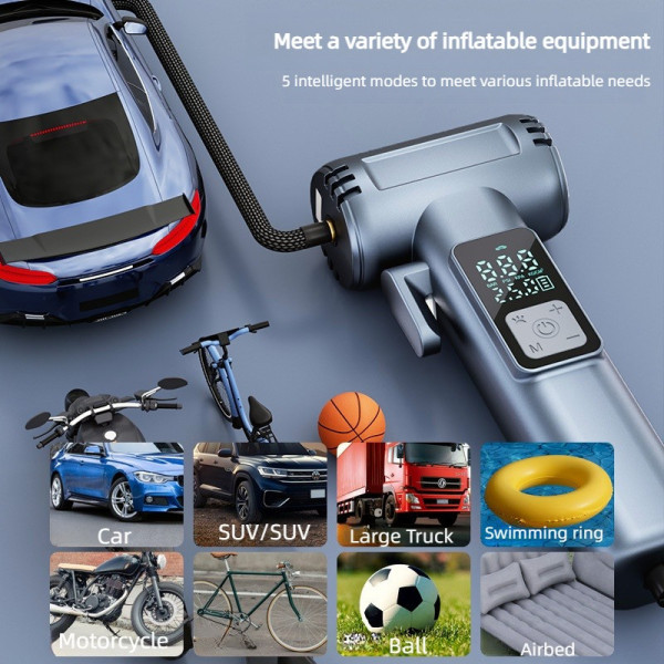 Пристрій обладнаний яскравим цифровим дисплеєм, який дає змогу точно контролювати тиск. Після досягнення заданого значення компресор автоматично вимикається, запобігаючи перекачуванню. Модель підтримує живлення від прикурювача 12 В і має вбудований Powerbank, що дає змогу заряджати смартфони та ґаджети через USB-порт.