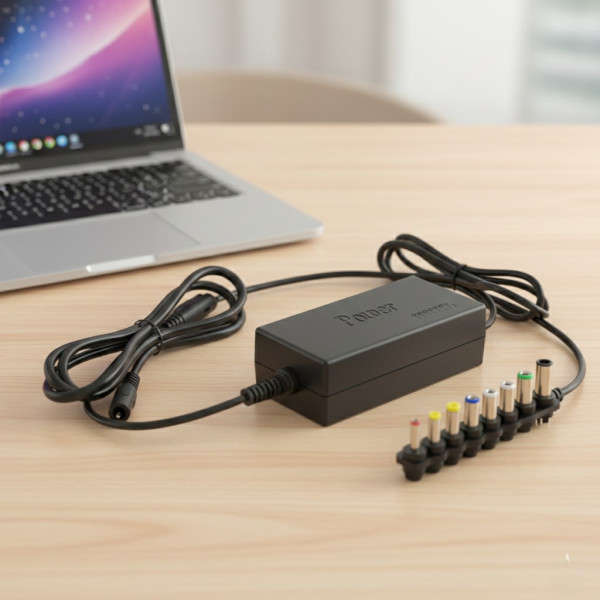 Універсальність цього адаптера для ноутбука полягає в можливості вибору необхідного режиму роботи за силою струму та напруги, а також різноманітним набором штекерів-насадок, що підходять для більшості моделей переносних комп'ютерів.