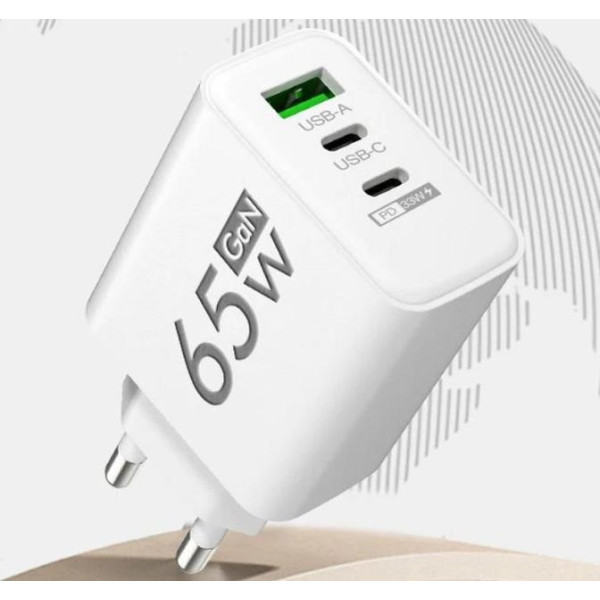 Універсальний зарядний пристрій GaN 65W TRG-185 з функцією швидкого заряджання біле