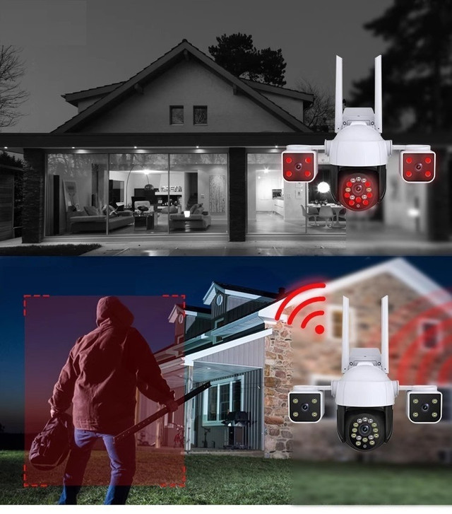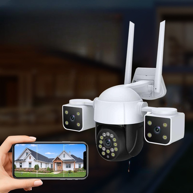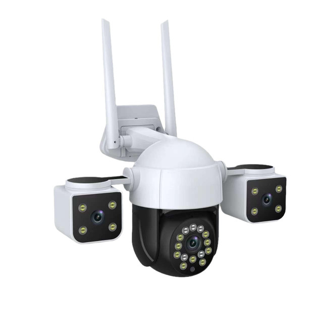 Вулична IP-камера 4G Wi-Fi/LAN — це сучасне рішення для надійного відеоспостереження вдома, на дачі, в офісі або на складі. Завдяки трьом об'єктивам 2+2 + 2 Мп камера забезпечує широкий кут огляду та деталізоване зображення будь-якої доби.