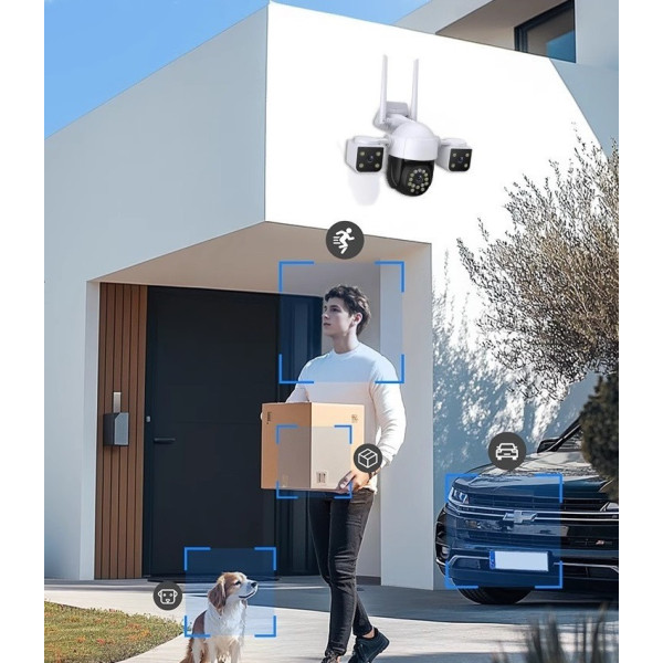Вулична IP-камера 4G Wi-Fi/LAN з 3 об'єктивами 2+2 Мп, нічним баченням, датчиком руху