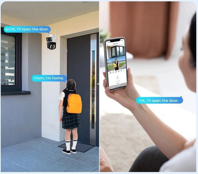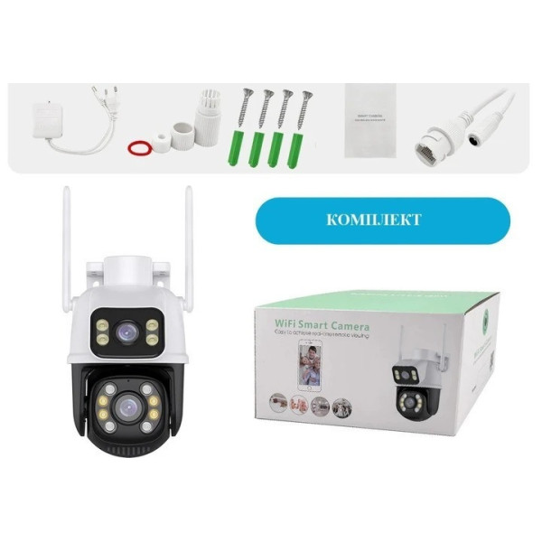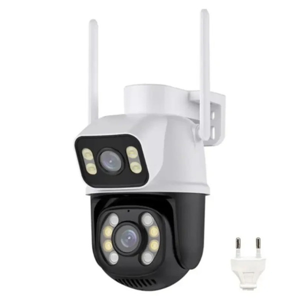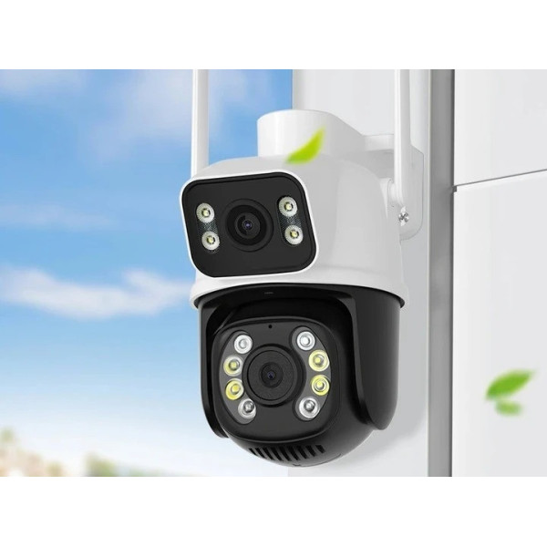 Вулична IP-камера A8BQ із подвійними лінзами та поворотним механізмом забезпечує повний контроль за територією будинку, офісу або дачі. Дві камери в одному корпусі дають змогу охопити широку площу та замінити кілька стаціонарних пристроїв, забезпечуючи високу деталізацію зображення будь-коли.