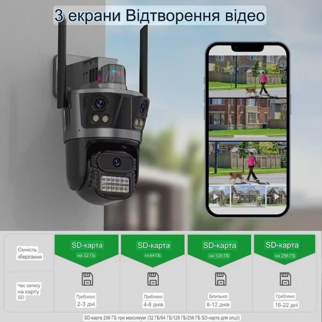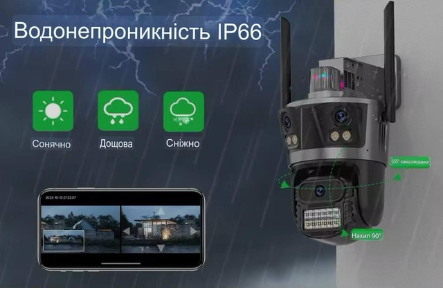 Три об'єктиви — максимальний огляд: камера охоплює до 270° і забезпечує повніше зображення навколишньої території.
