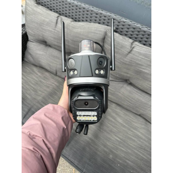 Вулична камера Icsee XM77 з Wi-Fi та трьома об'єктивами 12 МП для цілодобового спостереження