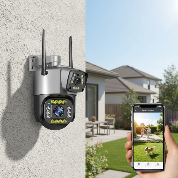Вулична камера відеоспостереження V380 4G з подвійним об'єктивом