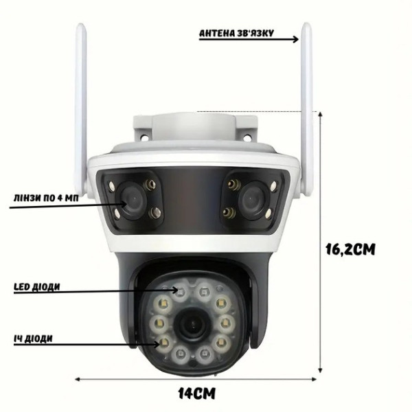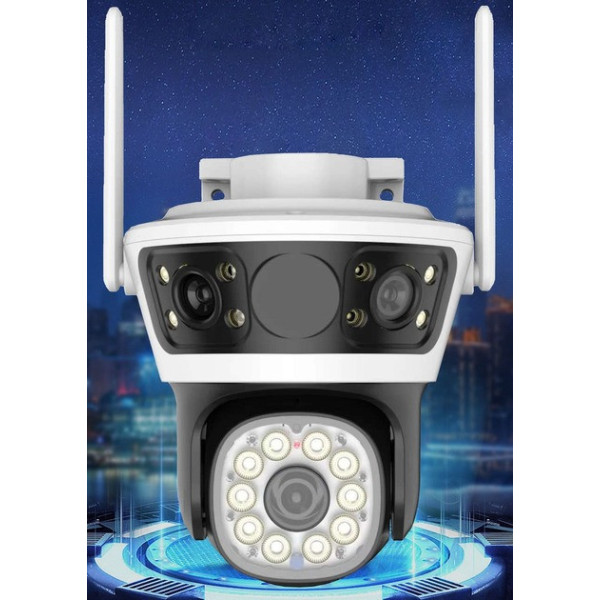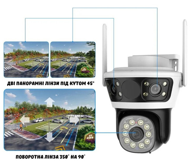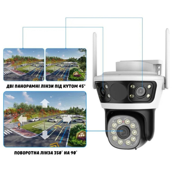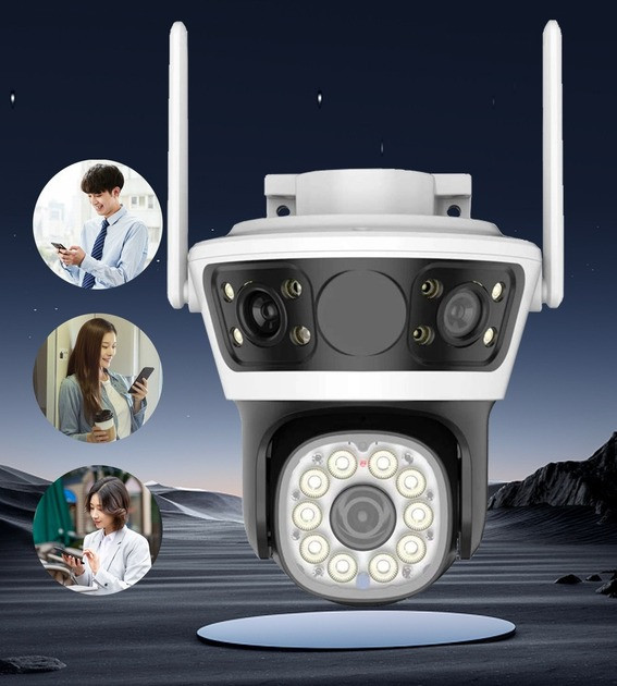 Відеокамера Q70 — це сучасне рішення для цілодобового відеоспостереження, що об'єднує широкий кут огляду, високу деталізацію та надійний зв'язок. Три об'єктиви 2+2 + 2 Мп забезпечують розширене охоплення території та чітку картинку без сліпих зон, а вбудована інфрачервона підсвітка дає змогу вести знімання навіть у повній темряві на відстані до 10 метрів.