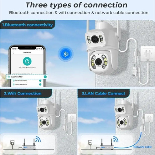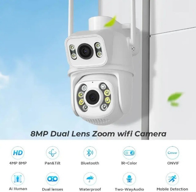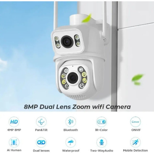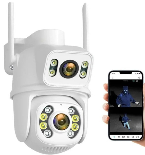 Вулична Wi-Fi камера відеоспостереження PTZ SD39 12MP — сучасне рішення для цілодобового контролю території. Камера обладнана двома об'єктивами: стаціонарним і поворотним, що дає змогу вести паралельну трансляцію та замінює відразу 2-3 звичайні камери. Просте встановлення та настроювання за 2-5 хвилин через LAN або Wi-Fi роблять її зручною для використання в будь-яких умовах.