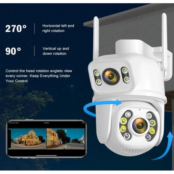 Два об'єктиви — стаціонарна та поворотна камери для повного огляду.