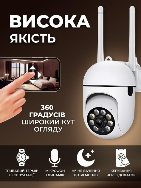 Вулична Wi-Fi PTZ IP-камера A1 2 Мп із поворотною головкою, нічним баченням, App керуванням