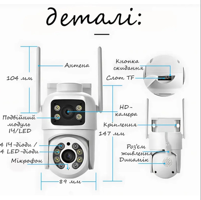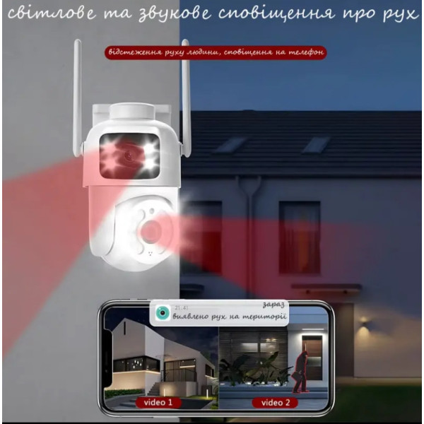 Завдяки двом потужним лінзам із роздільною здатністю 2×3 МП камера забезпечує чітку та деталізовану картинку як вдень, так і вночі. Кут огляду набагато збільшений, що дає змогу охоплювати більше простору без потреби встановлення додаткових пристроїв.