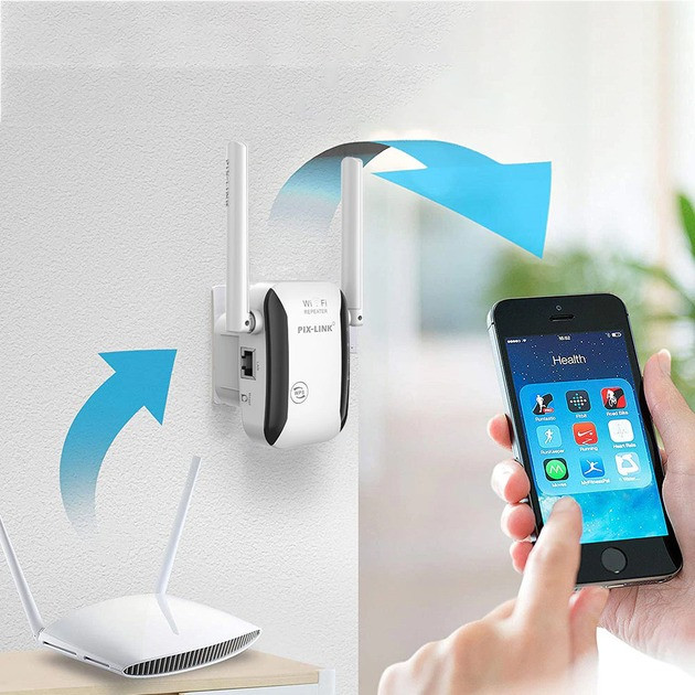 За допомогою двох зовнішніх антен репітер забезпечує впевнений сигнал на відстані до 300 метрів на відкритому повітрі та до 50 метрів у приміщенні. Він сумісний із більшістю пристроїв і простий у настроюванні через комп'ютер. Індикатори на корпусі допомагають контролювати роботу пристрою, а кнопки WPS і Reset дають змогу легко керувати під'єднанням і скидати настроювання.