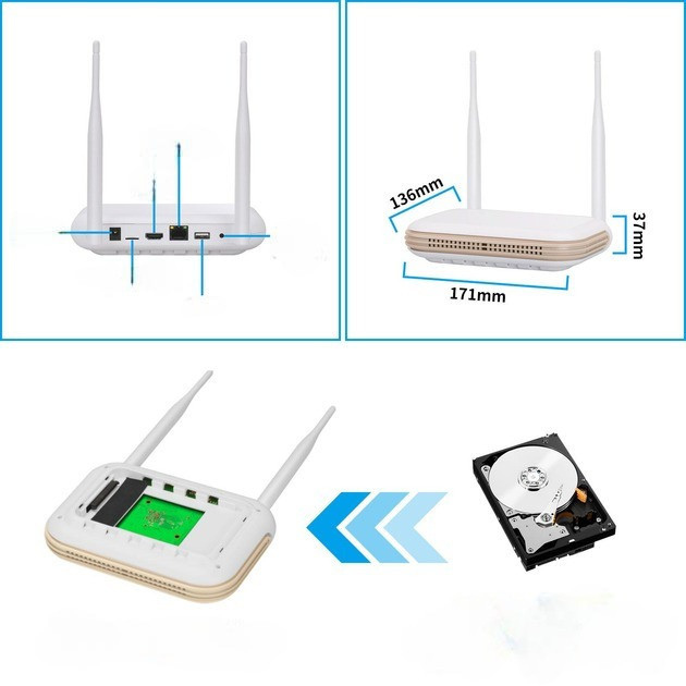 Відеореєстратор забезпечує цілодобовий запис 24/7, записування за рухом, циклічне записування та виведення зображення на монітор або телевізор через HDMI. Підтримується встановлення 2.5" HDD і використання TF-карт до 128 ГБ, а також можливість під'єднання хмарних і мережевих сховищ.