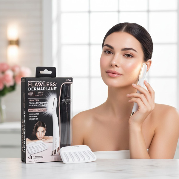Flawless Dermaplane Glo — інноваційний тример, який дає змогу провести процедуру дермапланінгу в домашніх умовах без професійної підготовки.