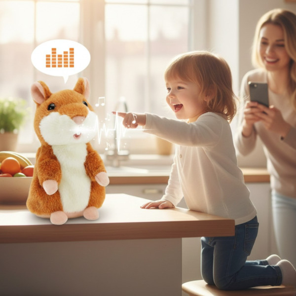 Гарна іграшка Хом'як підійде для дітей будь-якого віку. Хом'як запам'ятовує цілі фрази та повторює їх смішним голосом. Його слова супроводжуються рухами, хом'ячок рухається в такт звукам, що він вимовляє. З такою іграшкою дитина гратиме довго, і вона їй не набридне. Адже щоразу малюк зможе розповідати щось нове та чути, відповідно, відповідна. Іграшка допоможе вивчити стик на ранок у садок або навчити співати.