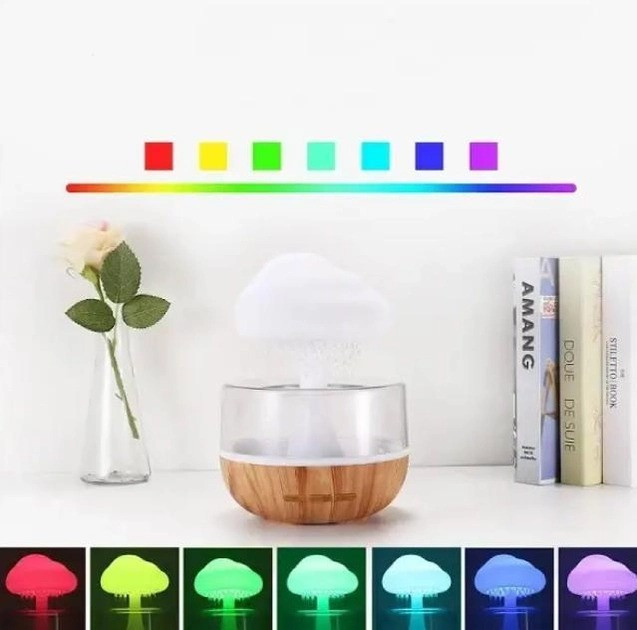 Ще однією чарівною особливістю цього зволожувача є кольорове підсвічування. Хмара підсвічується 7 різними кольорами, які по черзі змінюються один одного, створюючи чарівну атмосферу в приміщенні. Ви також можете вибрати один колір за вашим бажанням, якщо вам подобається певний настрій або стиль.