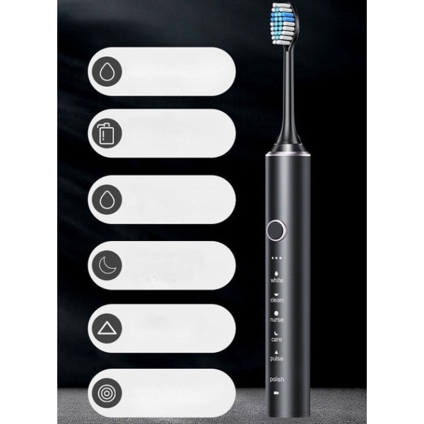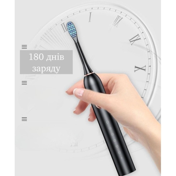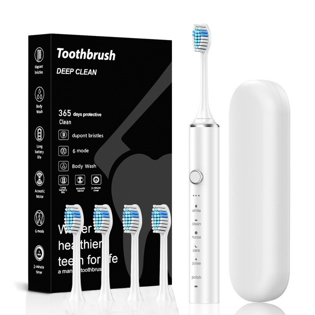 Звукова електрична зубна щітка з 6 режимами, м'яка щетина DuPont, 4 насадки, дорожній кейс